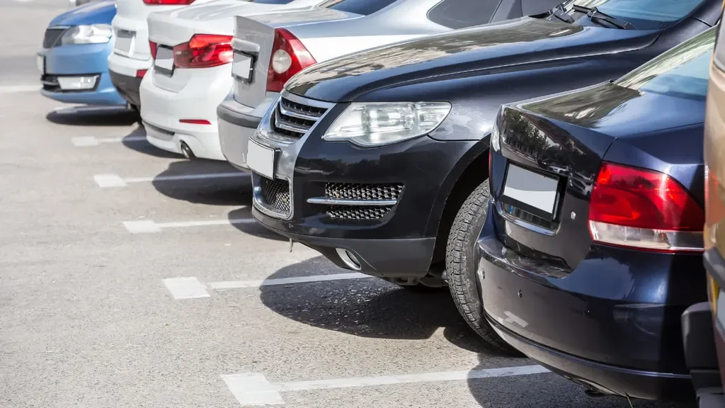 A row of rental cars parked in a lot, illustrating the common vehicles involved in rental car accidents and insurance claims in Los Angeles.